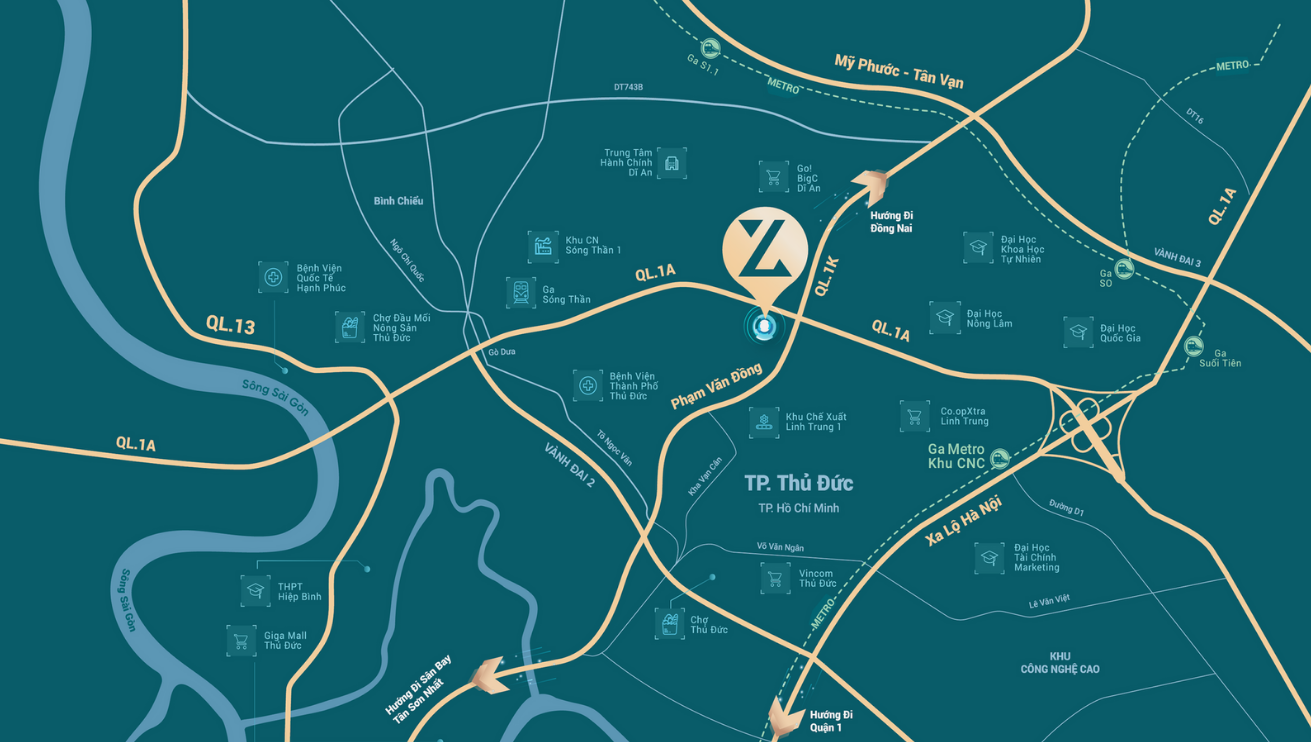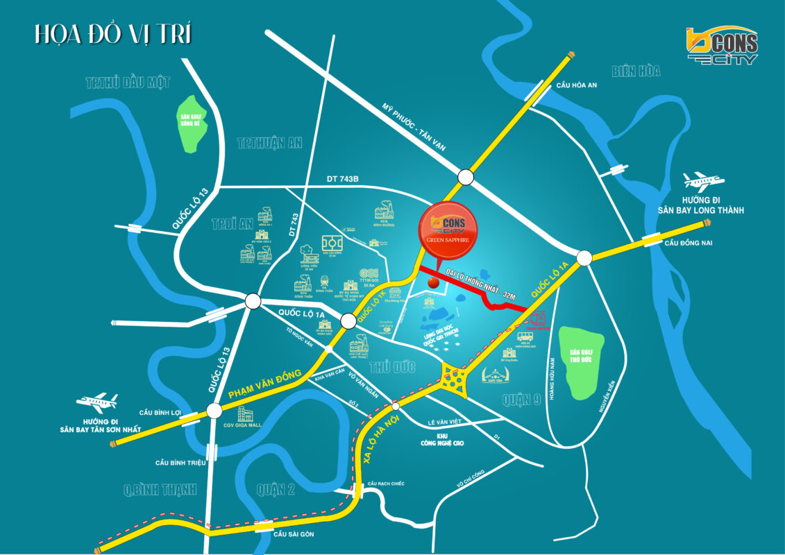 - Kết nối cực nhanh về KCN Sóng Thần (chỉ 2 phút), Thủ Đức (10 phút) và Aeon Mall (10 phút)
