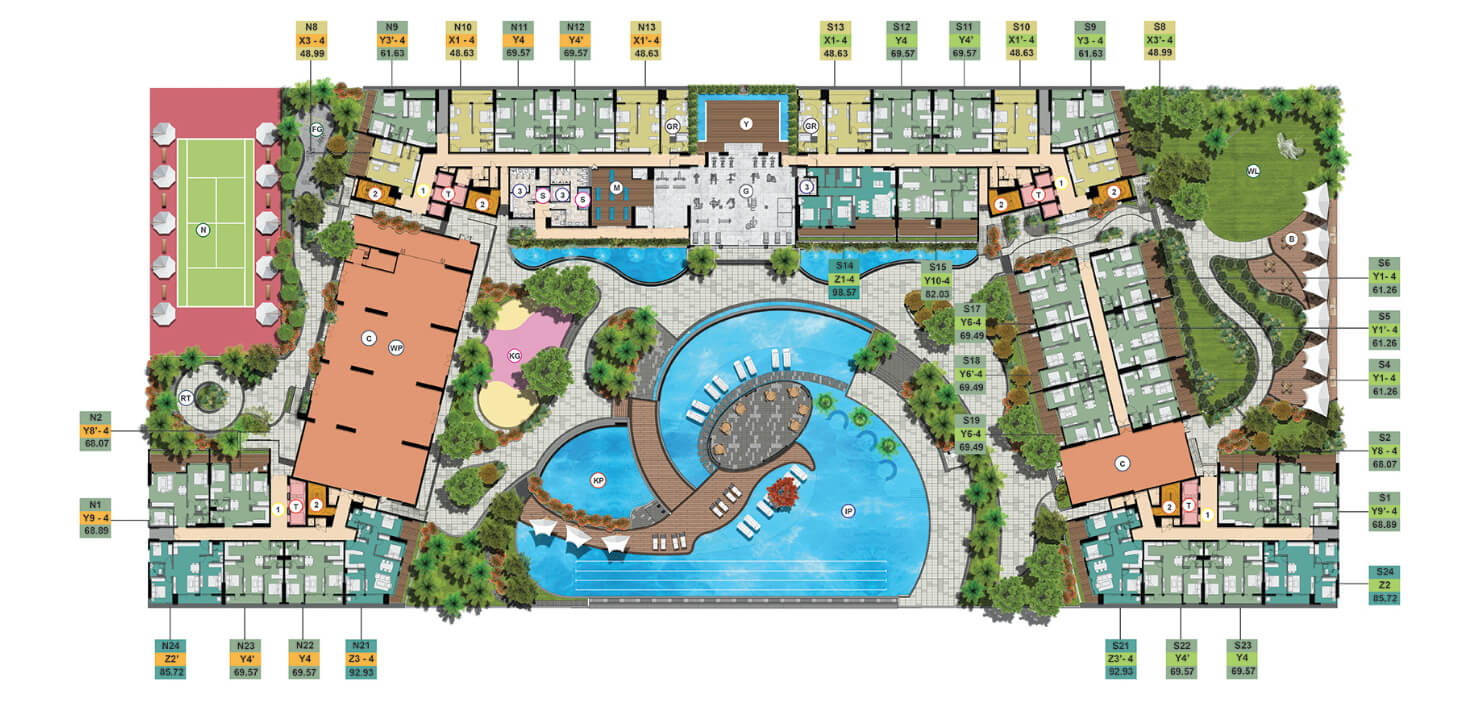 - Quy mô: 2 tòa tháp (N và S) cao 24 tầng